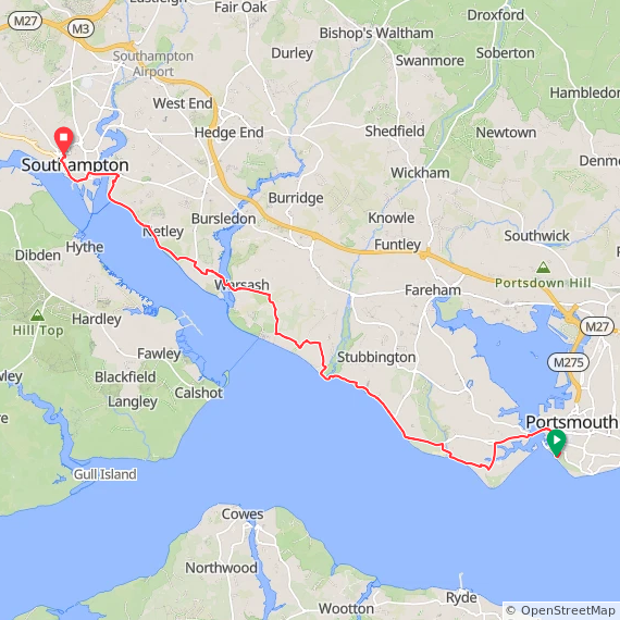 Distance: 36 km (22 miles) … plus an additional 12km for the Warsash Ferry diversion (see text below).